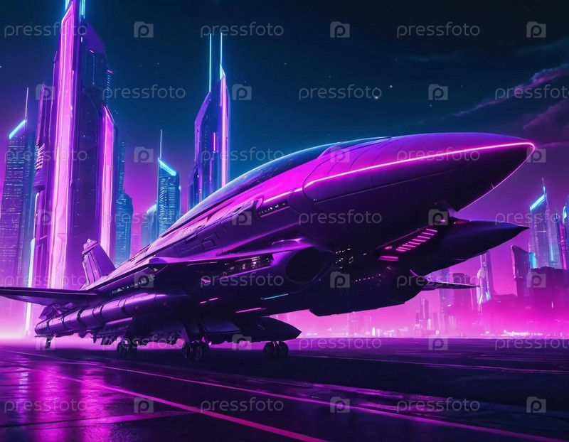 Футуристические космические корабли бороздят завораживающую вселенную, наполненную неоновыми оттенками, демонстрируя передовые технологии на фоне светящихся городских пейзажей. Генеративный ИИ