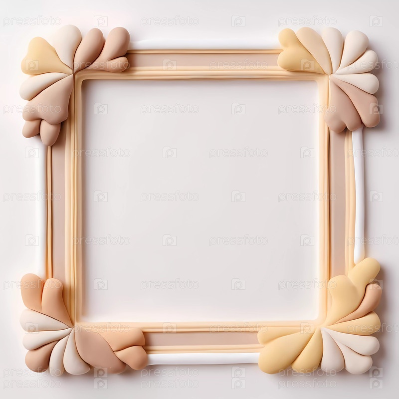 Декоративная рамка из мягкого пластилина в форме сердца установлена на гладком белом бежевом фоне и идеально подходит для демонстрации произведений искусства или фотографий