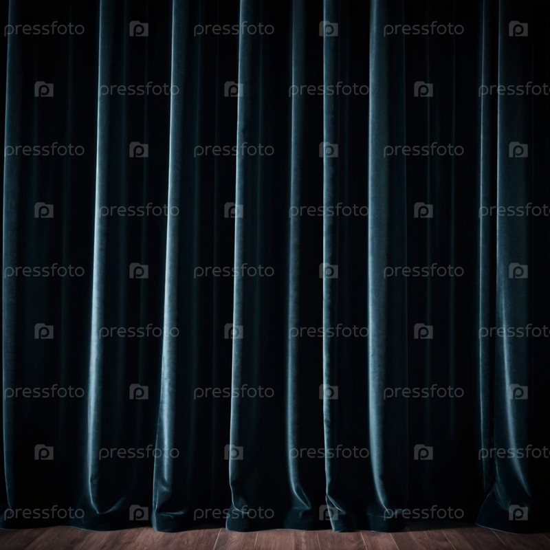 Штора с мягкими плавными струящимися складками. Глубокий черный цвет и роскошная фактура создают драматичную и элегантную атмосферу. Декорирование и дизайн интерьера. Дорогая штора из богатой ткани. AI