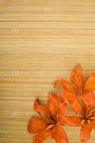 Три цветка лилии на бамбуковой циновке