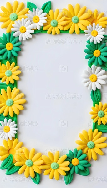Яркие ромашки белого, желтого и зеленого цвета окружают пустое пространство, создавая восхитительную рамку, идеально подходящую для личных сообщений или творческих проектов, вызывая чувство радости