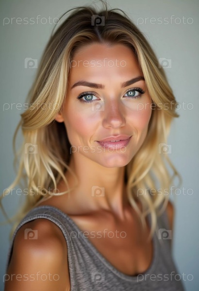 Светловолосая шведка излучает тепло и очарование, ее светлые волосы обрамляют ее лицо, когда она позирует в мягко освещенном пространстве, отражая уверенность и грацию Генеративный искусственный интеллект