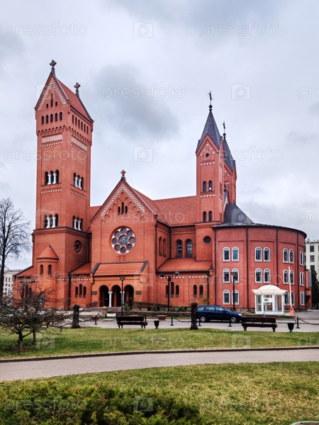 Минск, Беларусь - 05 апреля 2025 г.: Костел Святых Симеона и Елены. Католический костел на площади Независимости в центре Минска