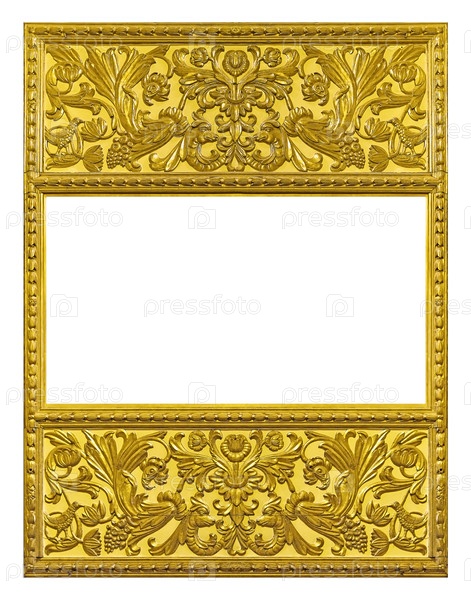 Золотая рамка для картин, зеркал или фото, изолированных на белом фоне. Элемент дизайна с обтравочным контуром