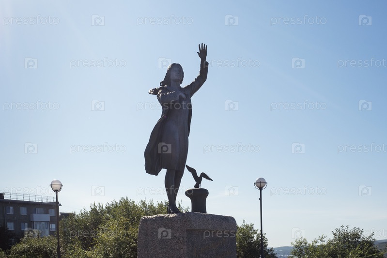 Мурманск, Россия, 8 августа 2024 г.: Памятник «Ожидание» — жанровая скульптура, посвященная женам моряков