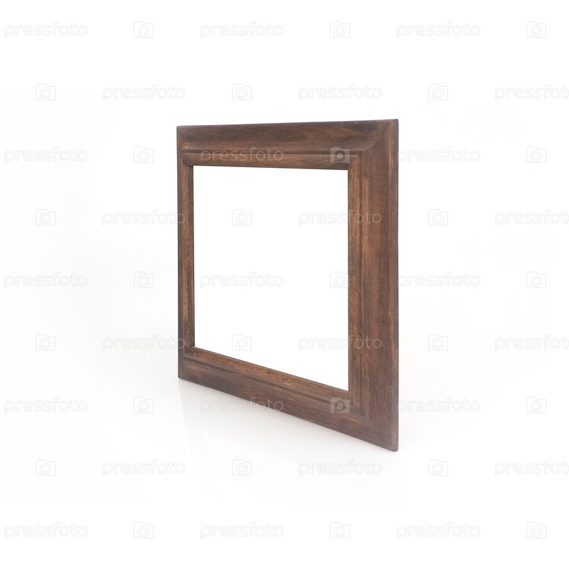 Деревянная рама для картин, зеркал или фотографий в перспективе, изолированная на белом фоне