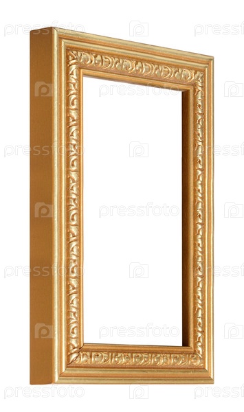 Золотая рама для картин, зеркал или фотографий в фронтальном и перспективном виде, изолированных на белом фоне