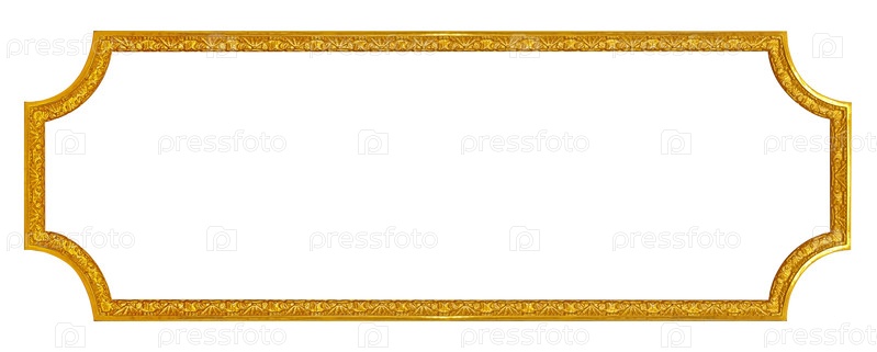Панорамная золотая рамка для картин, зеркал или фото, изолированных на белом фоне. Элемент дизайна с обтравочным контуром