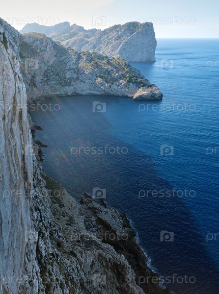 Вид на морской залив с высокой скалы в солнечный летний день