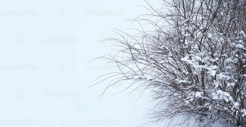 Пейзаж с кустами в снегу в зимний день