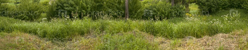 Летний европейский пейзаж на опушке леса (длинная панорама)