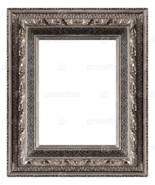 Серебряная рамка для картин, зеркал или фото, изолированных на белом фоне. Элемент дизайна с обтравочным контуром