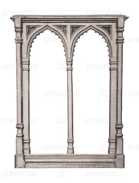 Двойная готическая серебряная рама (диптих) для картин, зеркал или фотографий, изолированных на белом фоне. Элемент дизайна с обтравочным контуром