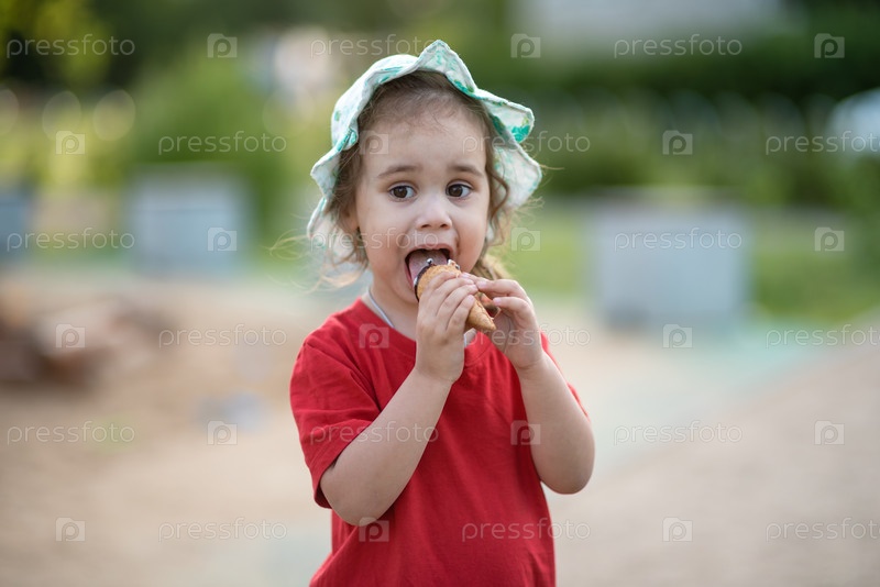 Портрет ребенка с мороженым крупным планом