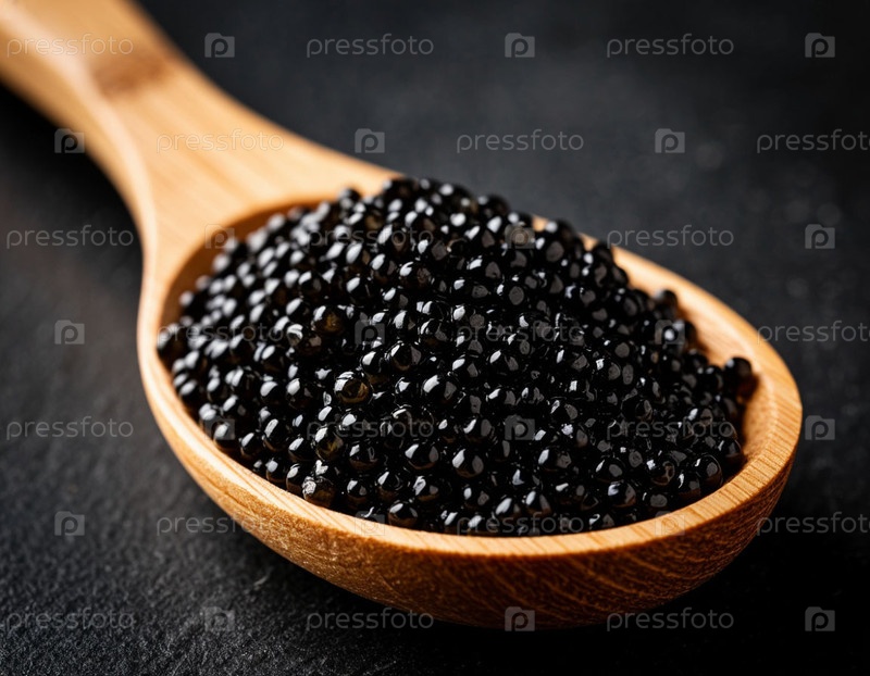 Деревянная ложка с черной икрой. Сгенерировано с помощью ИИ