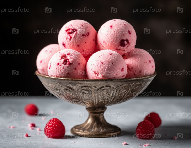 Шарики мороженого в миске. Создано с помощью ИИ