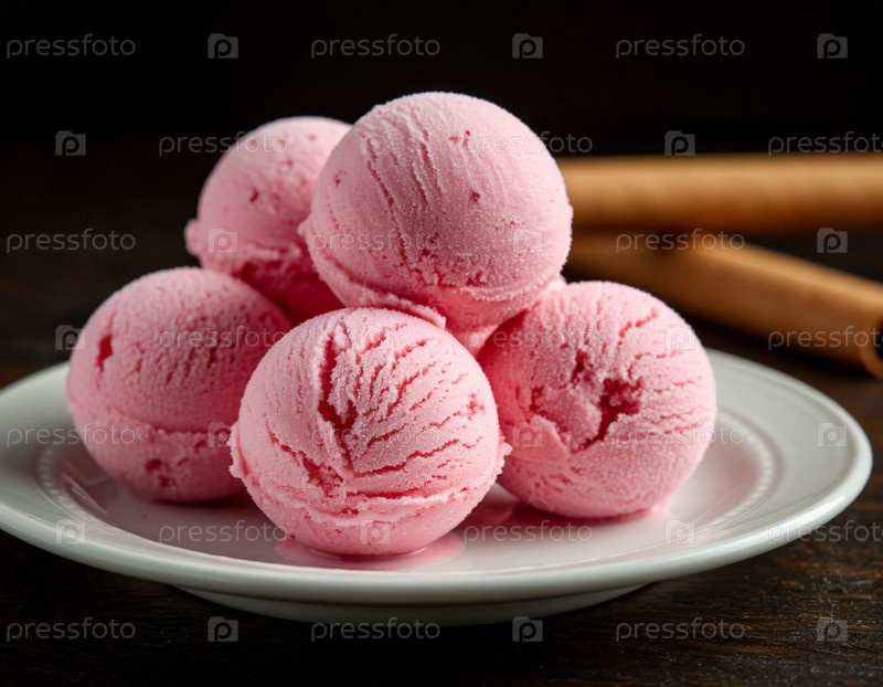 Шарики мороженого на белой тарелке. Сгенерировано с помощью ИИ