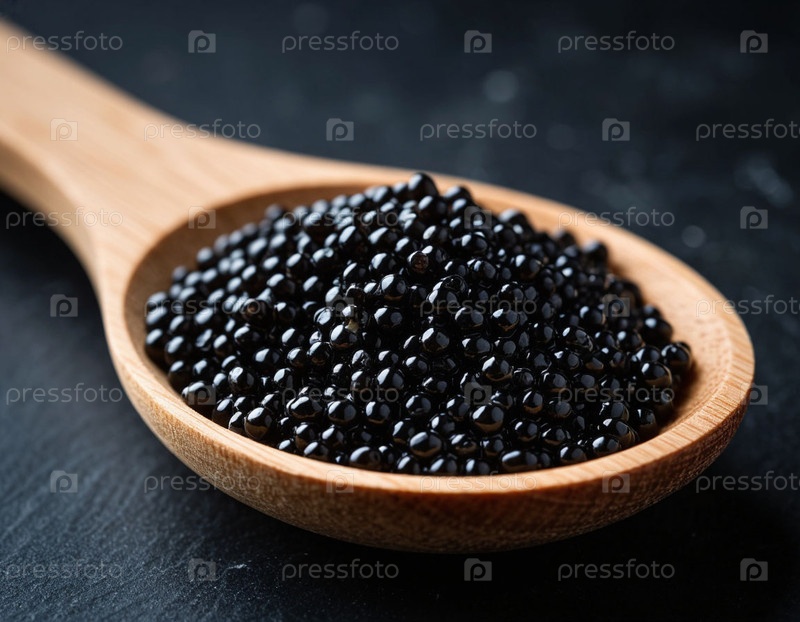 Деревянная ложка с черной икрой. Сгенерировано с помощью ИИ