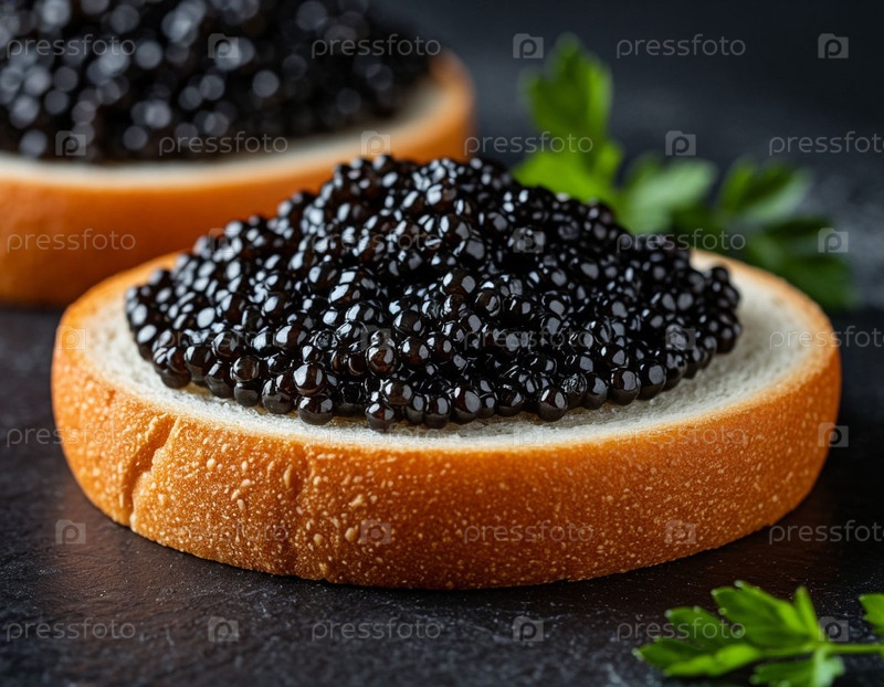 Сэндвич с черной икрой на столе. Сгенерировано с помощью ИИ