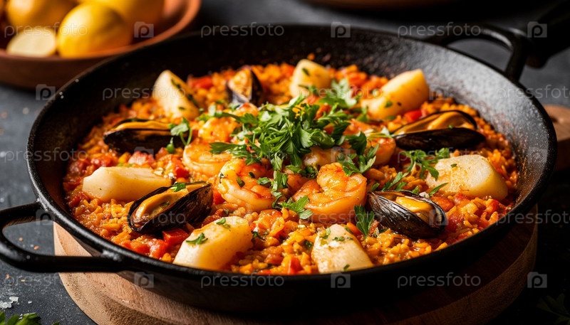 Паэлья на столе, созданная искусственным интеллектом