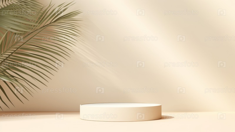 Пустой каменный постамент с зелеными листьями современный фон. Дизайн дисплея продукта, шаблон макета