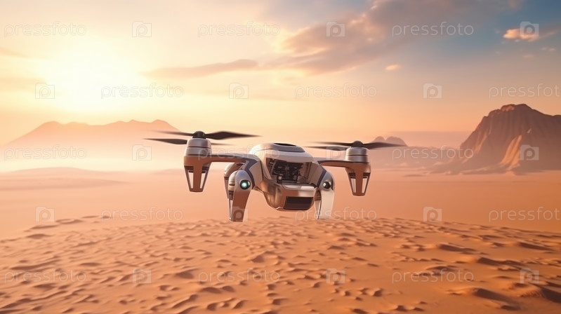 Военный FPV-дрон парит над обширным пустынным ландшафтом с далекими горами
