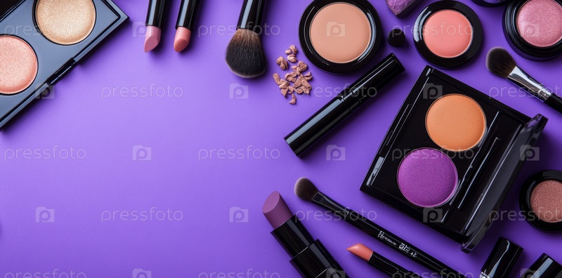 Стильная демонстрация ярких фиолетовых принадлежностей для макияжа