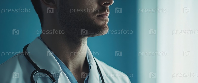 Медицинский работник в центре внимания со стетоскопом в современной клинике