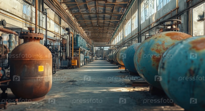 Заброшенные газовые баллоны на промышленном складе отражают кризис