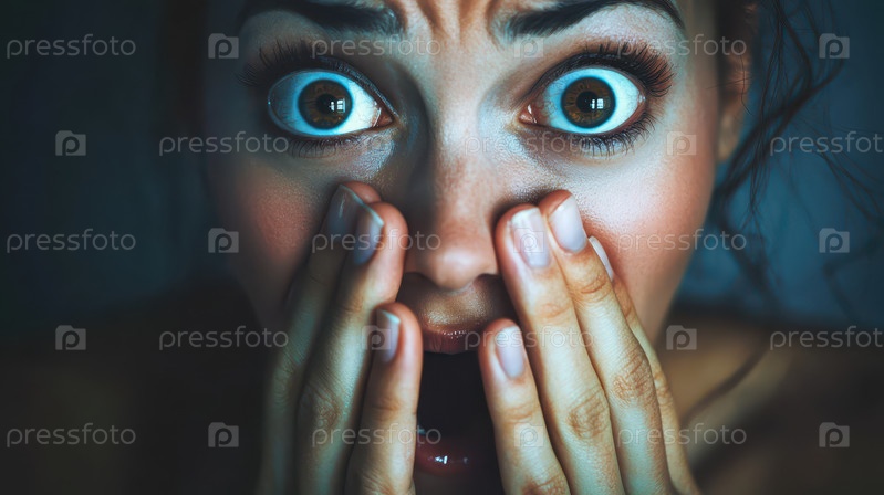 Женщина с потрясенным выражением лица, закрывающая рот и глаза