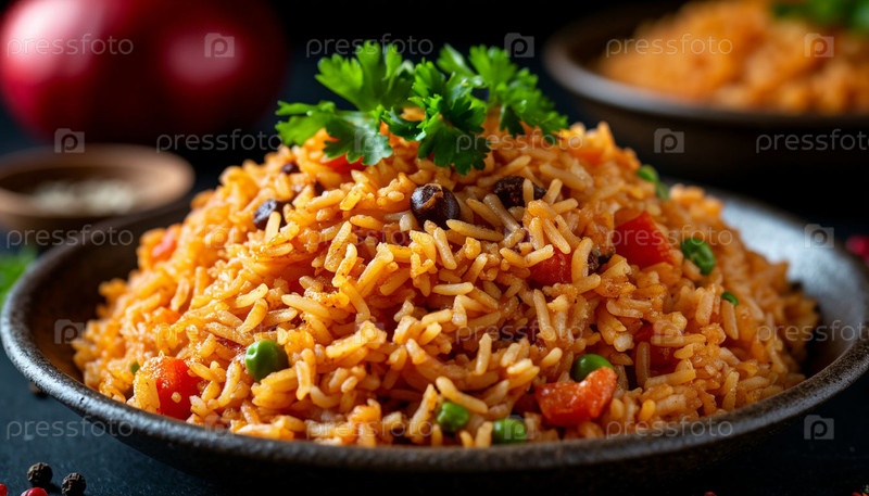 Узбекский плов на столе, сгенерированный ИИ
