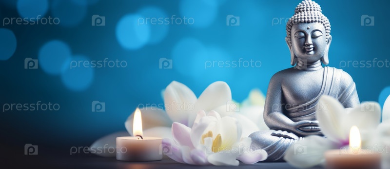 Медитация статуи Будды на синем фоне