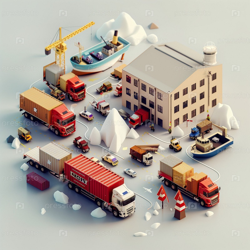 Транспорт и концепция логистических перевозок. Грузовики, корабли, самолеты, логистика доставки грузов