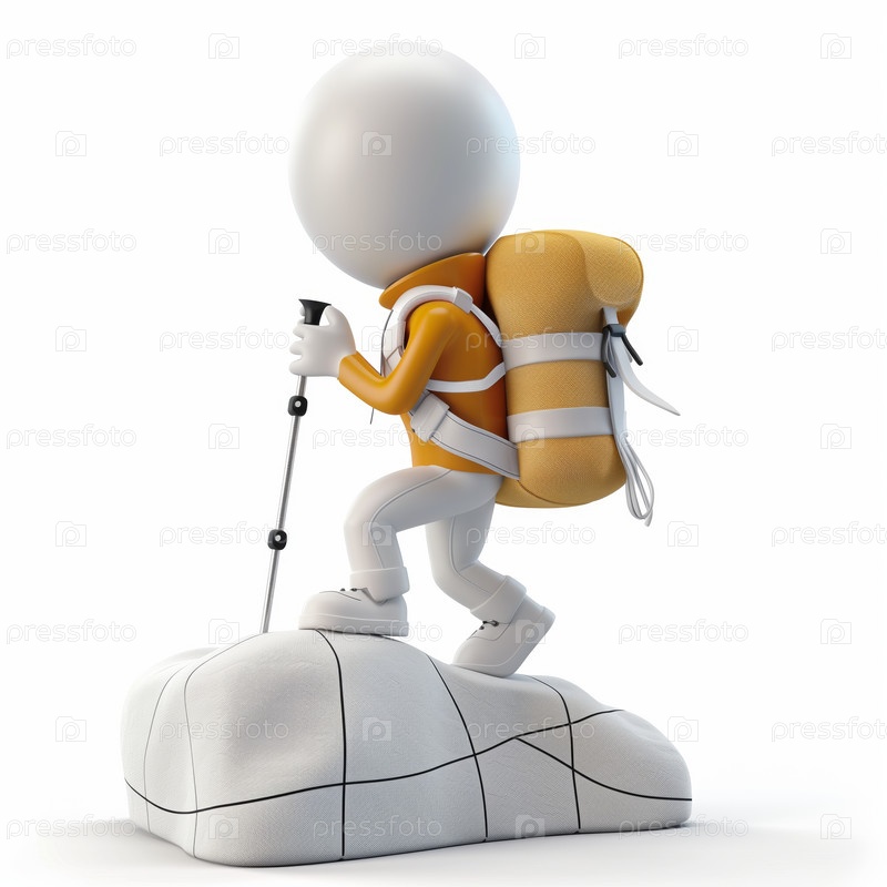 Стикмен идет по горной тропе, изолированный на белом фоне