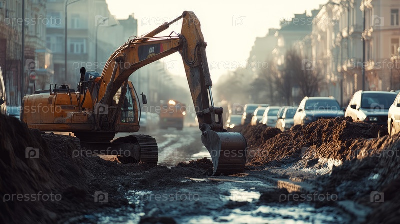 На оживленной городской улице ведутся масштабные строительные работы