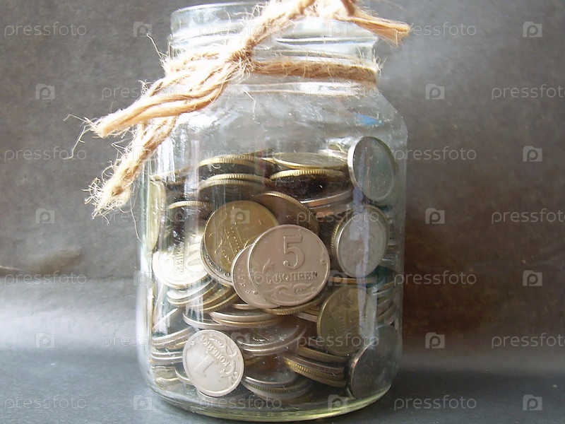 Монеты в стеклянной банке на темном фоне