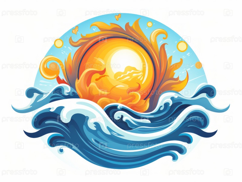 Иллюстрация в стиле витража с абстрактным солнцем, круглое изображение