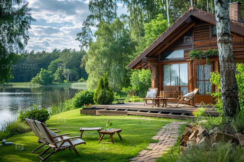 Элегантный современный дом на берегу озера с большими стеклянными стенами и пирсом