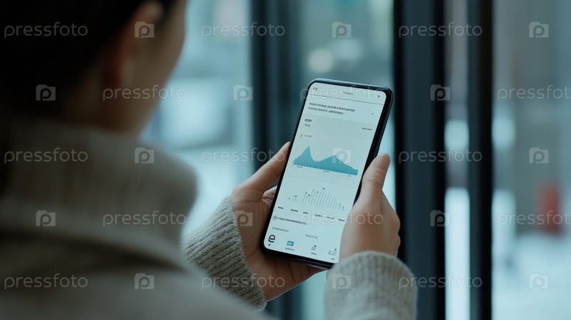 Бизнесвумен анализирует данные на мобильном телефоне