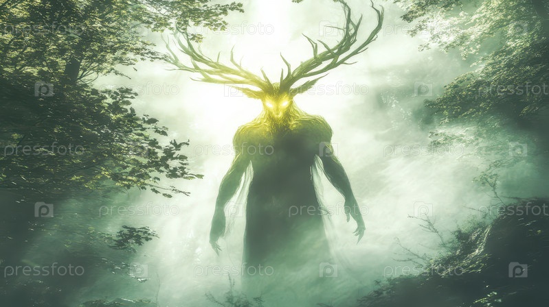 Мистический лесной дух со светящимися глазами