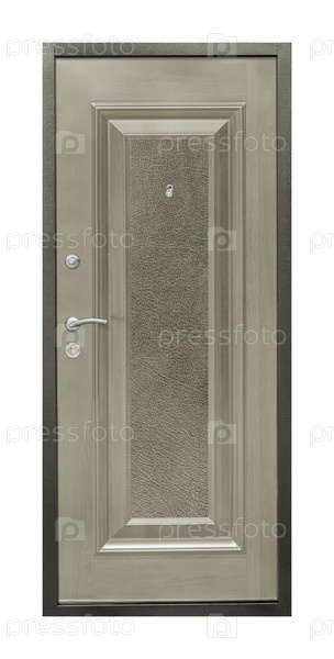 Модель входной металлической двери, изолированная на белом фоне