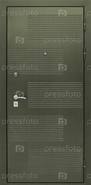 Входная металическая дверь, изолированная на белом фоне
