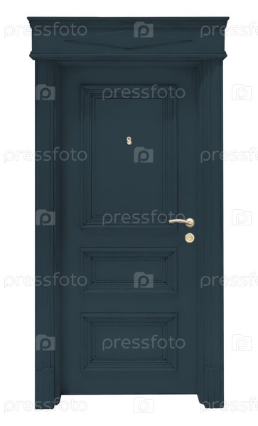 Модель входной металлической двери, изолированная на белом фоне