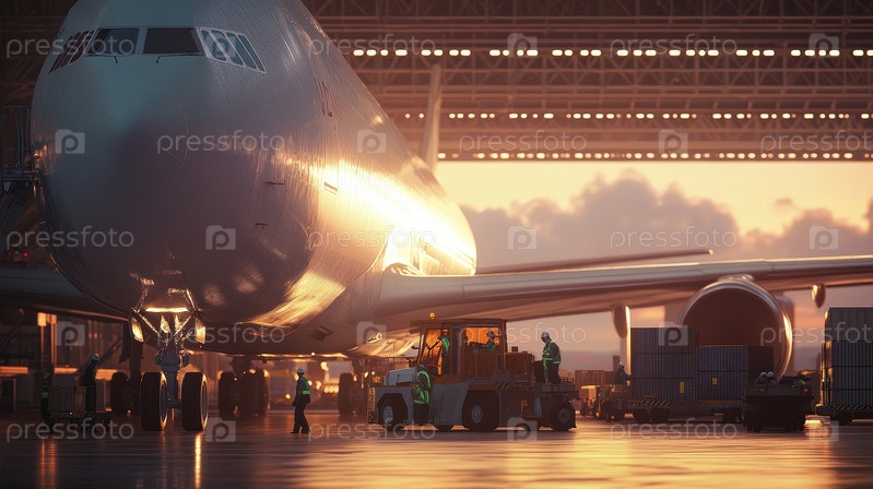 Изображение грузовых контейнеров в аэропорту, ожидающих погрузки на самолет