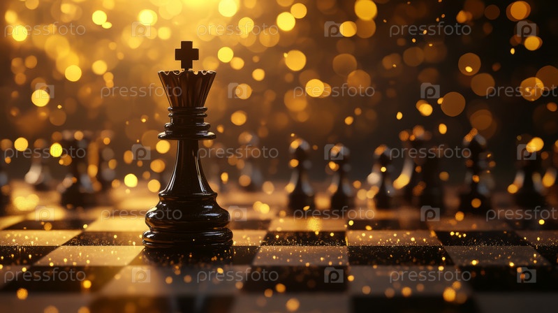 Шахматный король величественно возвышается среди тлеющих углей, символизируя стратегию и победу