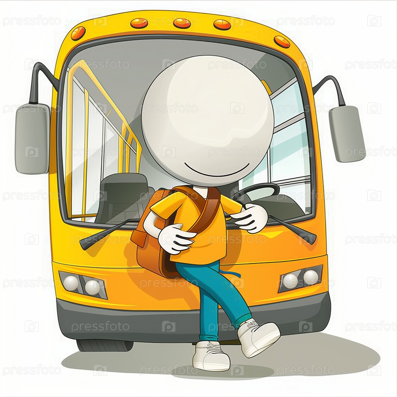 Стикмен за рулем автобуса, изолированный на белом фоне