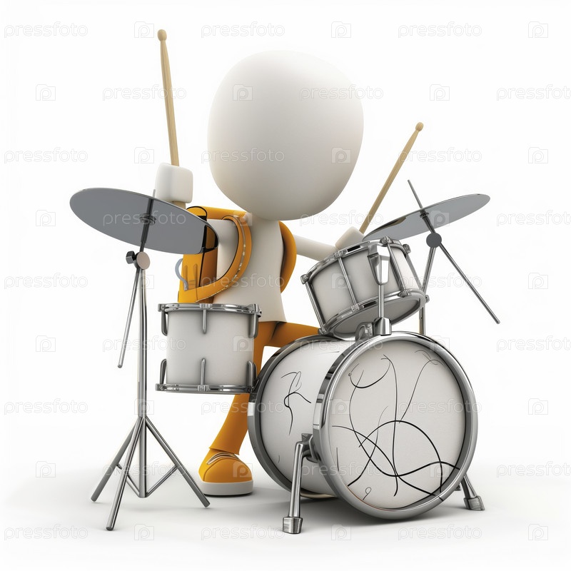Стикмен играет на барабанах, изолированный на белом фоне