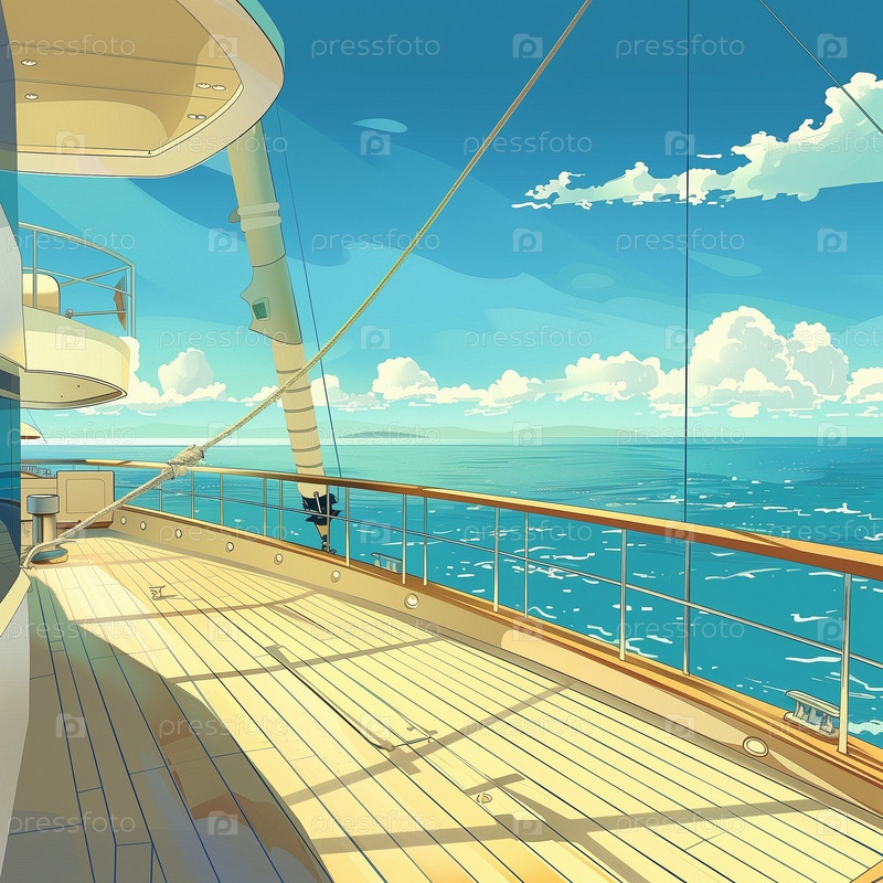 Яхта мчится по волнам моря. Винтажный стиль аниме