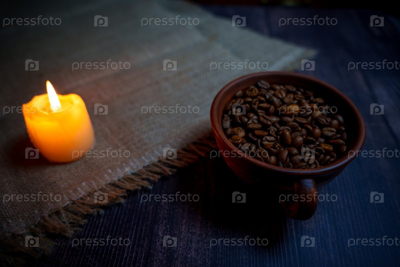 Кофейные зерна в глиняной кружке