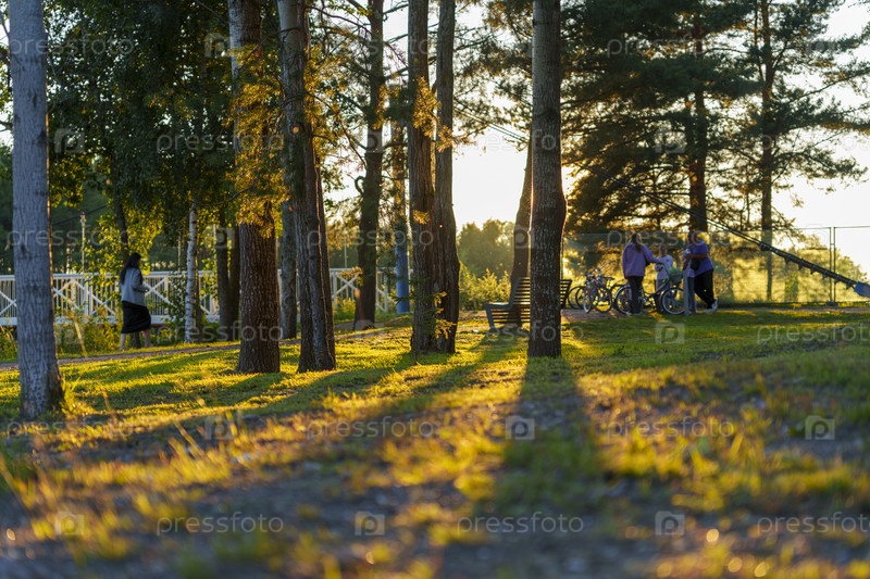 Залитый солнцем лесопарк во время золотого часа